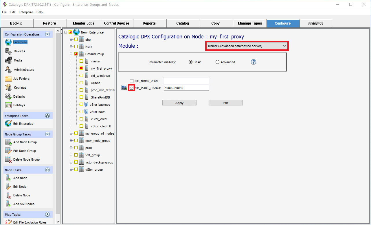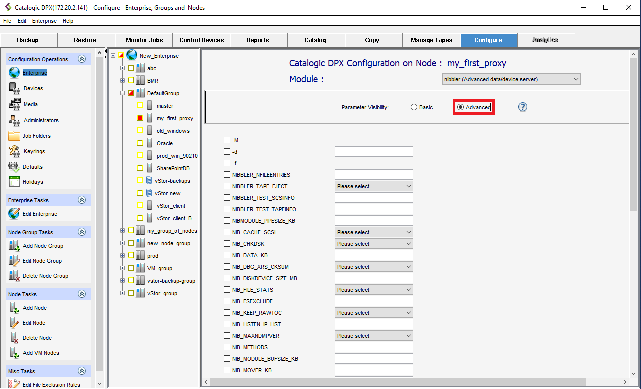 - The Parameter Configuration Interface supports all node types with the exception of NDMP-only nodes (such as Filers and UnixWare nodes).