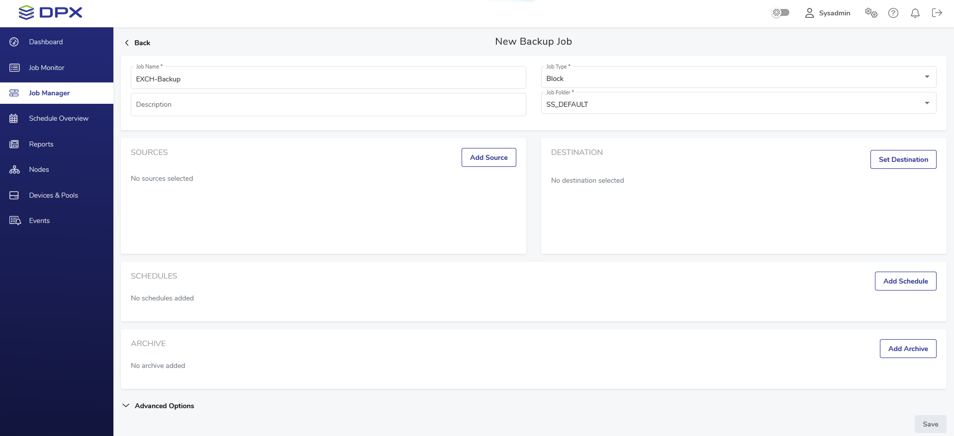 - Enter the retention period and choose whether to run the job immediately. Your job will be now available in the Job Manager section.
