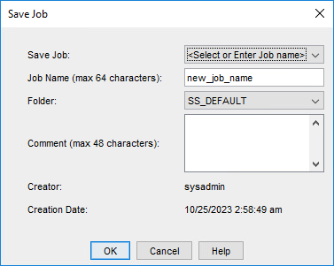 1. Specify the Job Name (this field may contain up to 16 characters). Add an optional, brief description (this field may contain up to 48 characters).