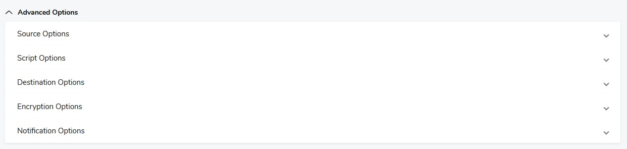 In the web interface, backup job options are defined in the Advanced Options section. To access them, do the following: