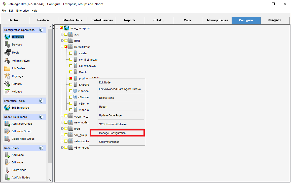 2. In the navigation tree, right-click the node you want to configure, and click Manage Configuration to open the Parameter Configuration Interface of the selected node.