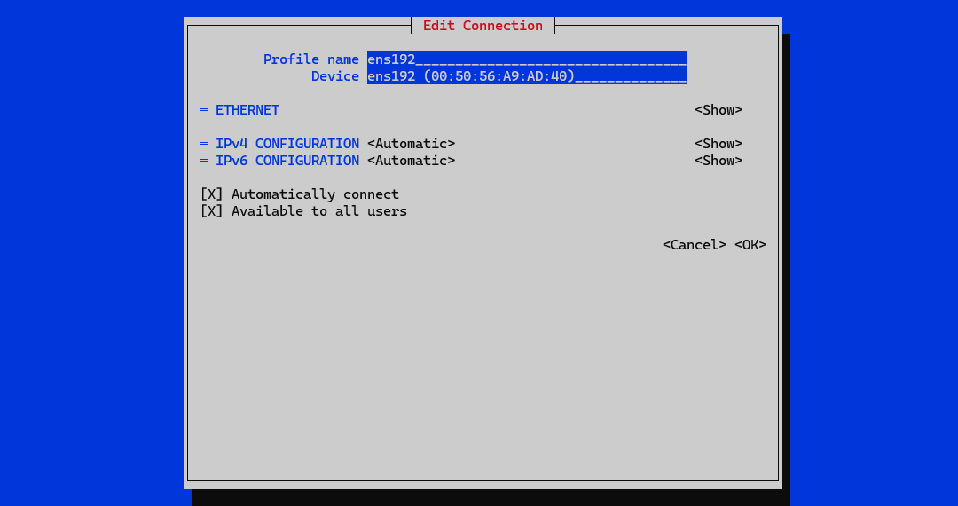 From the main menu, select Edit a connection, and then click OK or press Enter.\