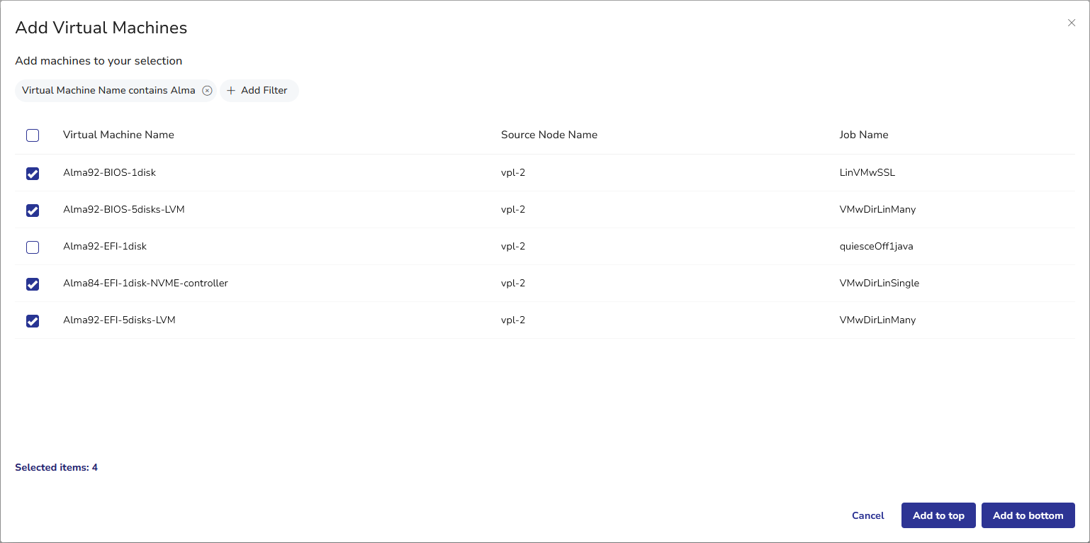 - Click Add to bottom to place the newly selected VMs after those previously added.