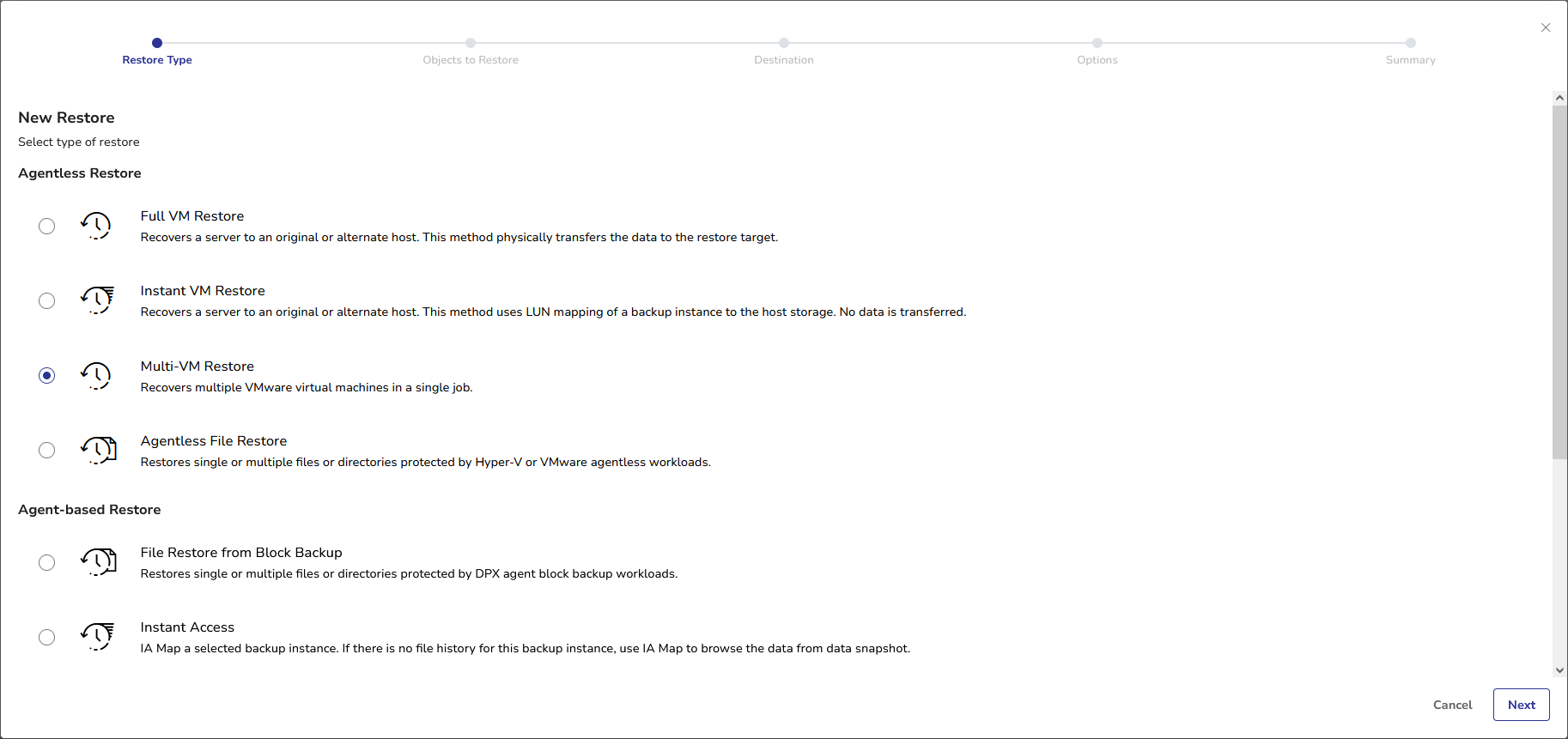 - Select Multi-VM Restore and click Next.