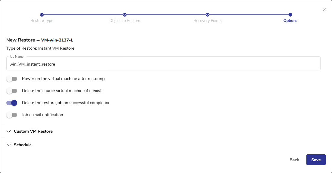 Creating an Instant VM Restore Job