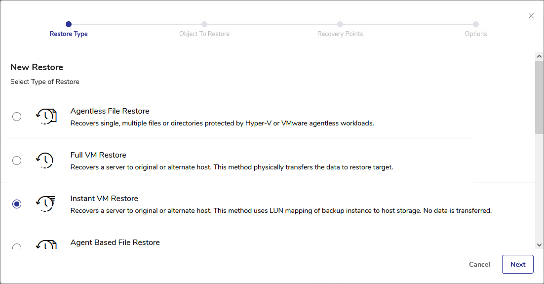 - Select Instant VM Restore and click Next.