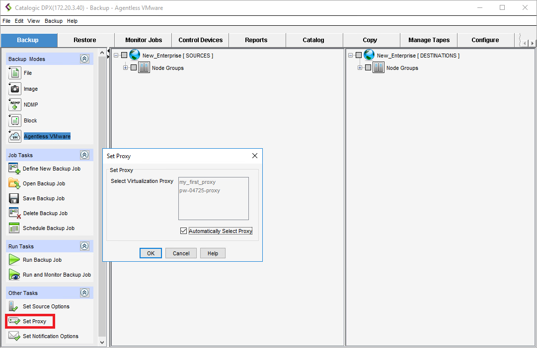 On the backup Task Panel, under Other Tasks, click Set Proxy. The Set Proxy dialog appears.\