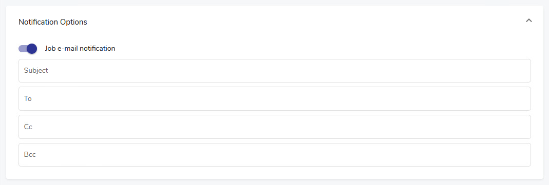 To access the job notification options, go to the Advanced Options section at the bottom of the job definition view (scroll down if necessary) and expand it. Click the Notification options header.