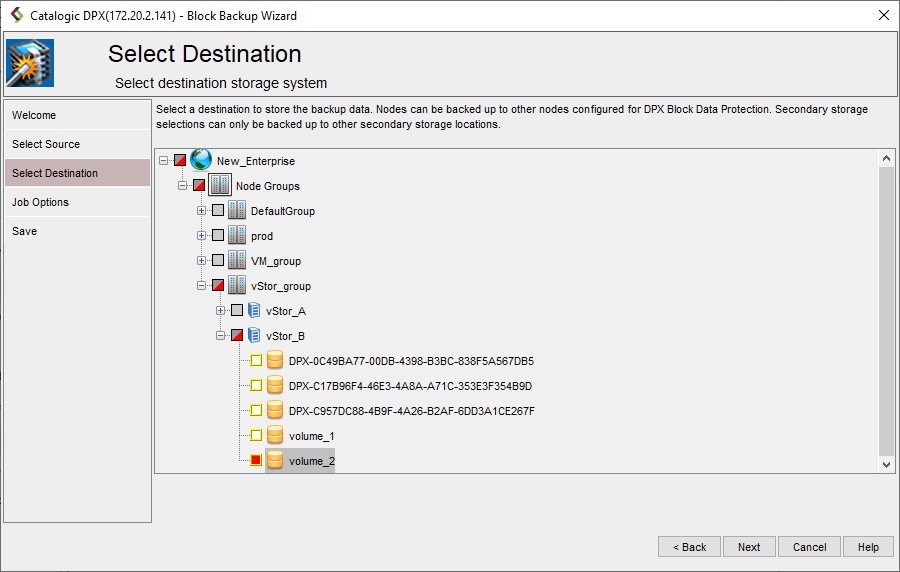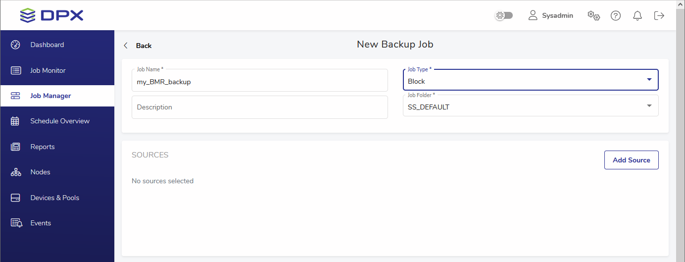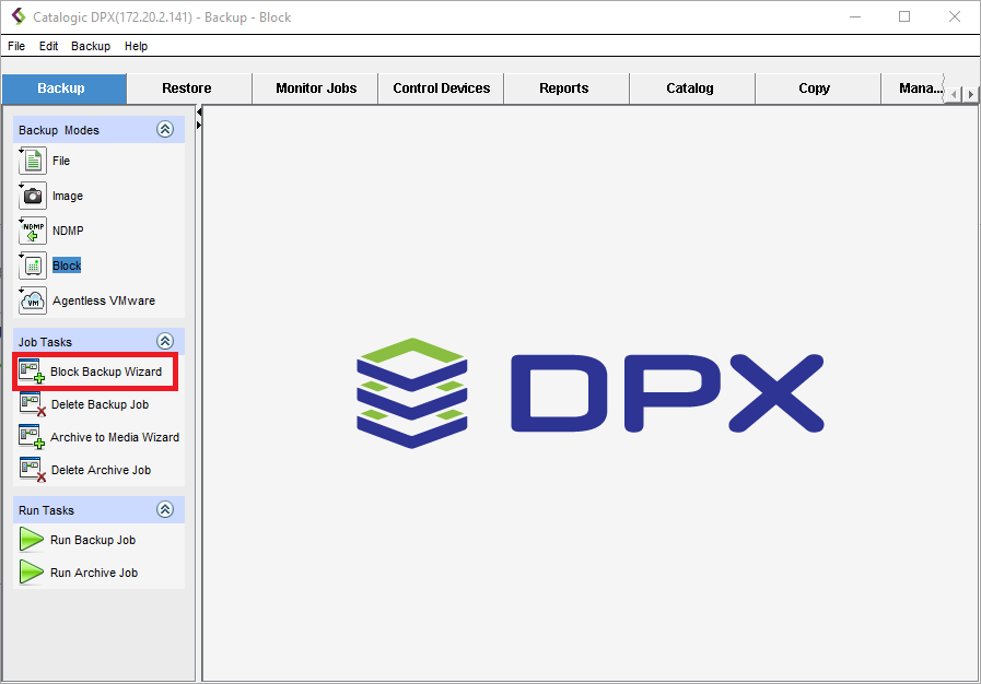 In the web interface, block backups are defined in the Job Manager section. In the desktop interface, block backups are implemented through a backup wizard. This also applies to BMR block backups.