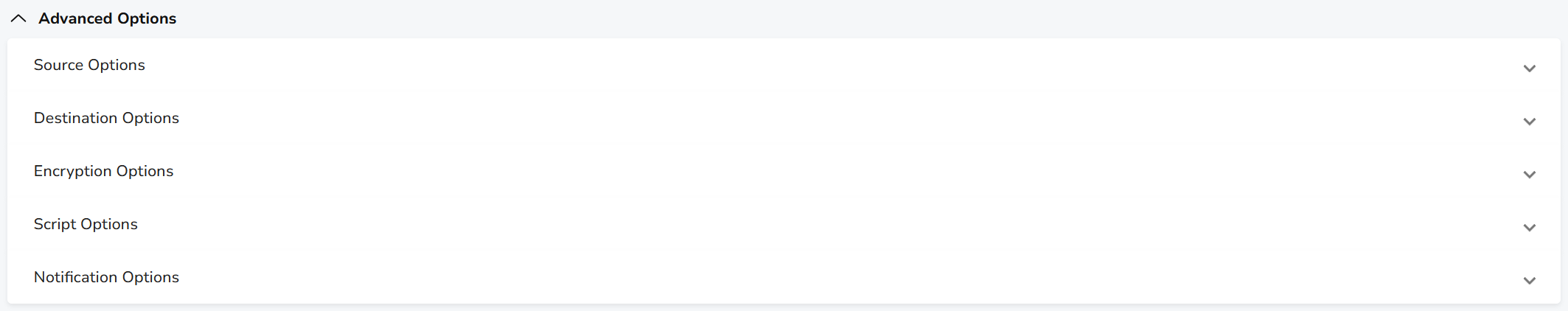 In the web interface, backup job options are defined in the Advanced Options section. To access them, do the following: