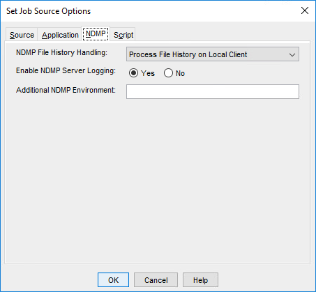 | Process File History on Local Client | Enables NDMP server file history generation and processes the file history data on the NDMP client node. This is the default. |