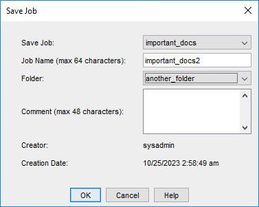 The Save Job dialog will appear.