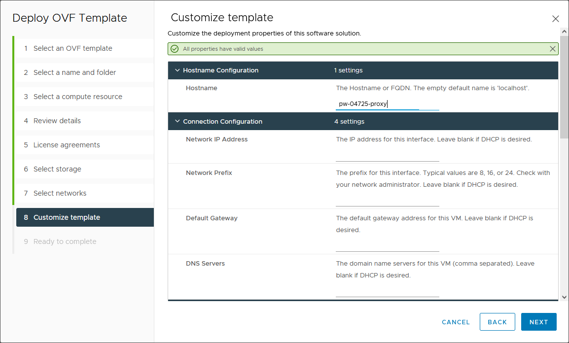 Hostname Configurations- Hostname: The hostname of this DPX Proxy Server virtual appliance. The hostname must be unique.