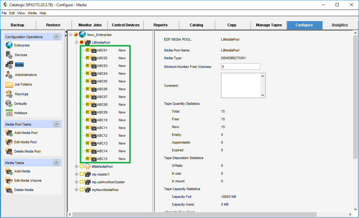 - A media volume cannot belong to more than one media pool.
