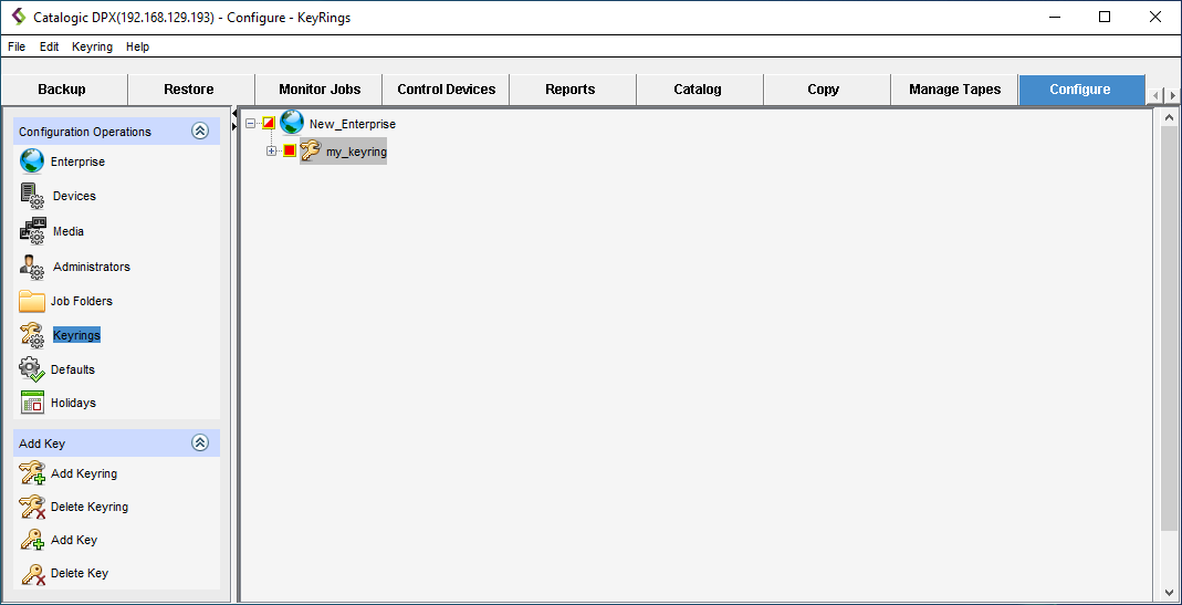 - Click Keyrings in the Configuration Operations section in the sidebar.