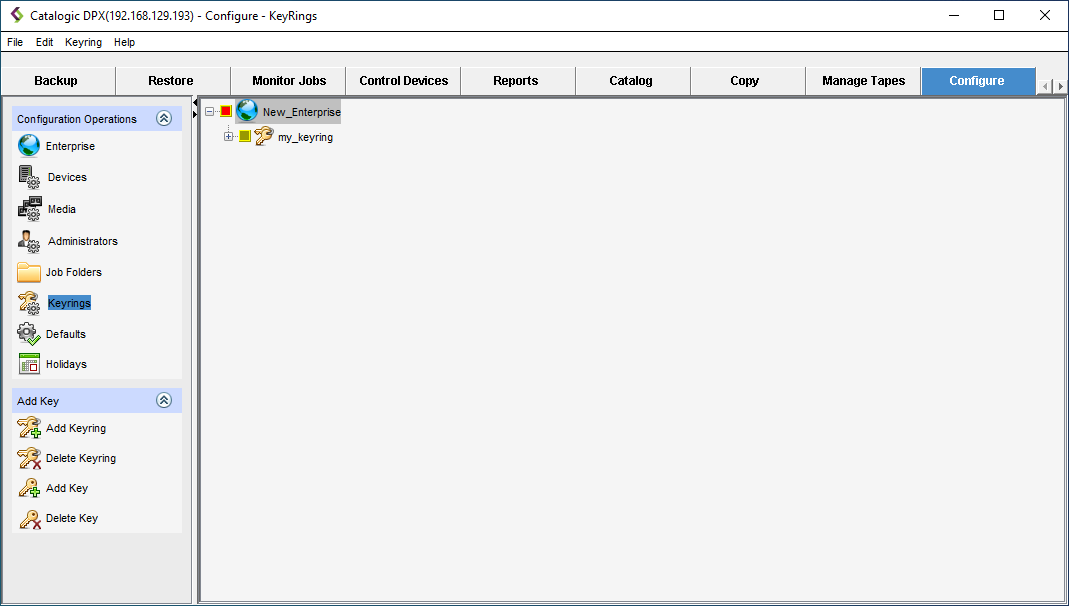 Keyrings are groupings of DPX keys. These keys are used to derive actual encryption keys for data-encrypted jobs.