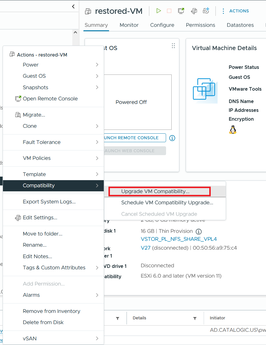 - Select Compatibility > Upgrade VM Compatibility….