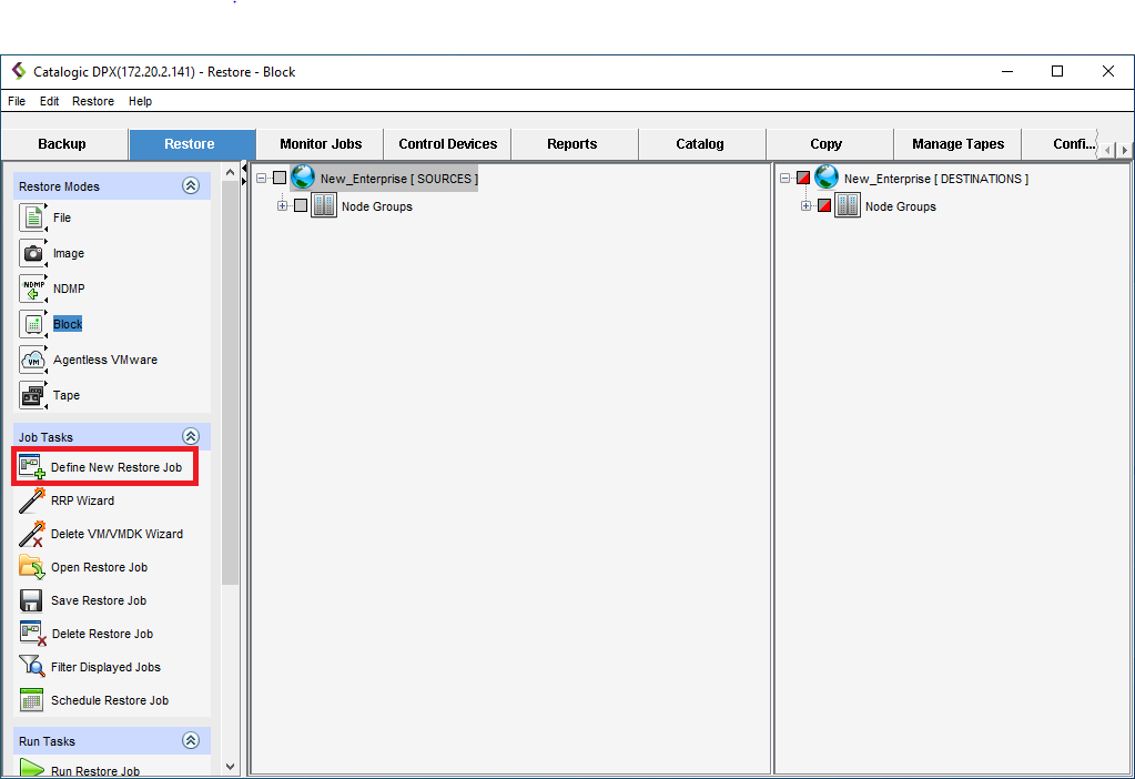- Continue defining the Backup Restore Job, as specified in Creating a Block Restore Job.