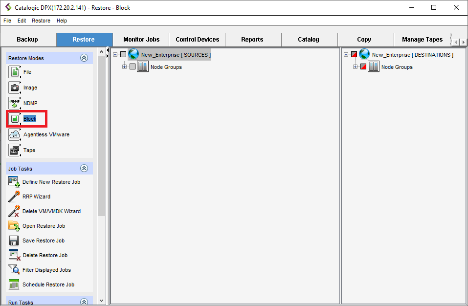 - In the Sources pane, drill down to find the BMR backup within the node you want to restore.
