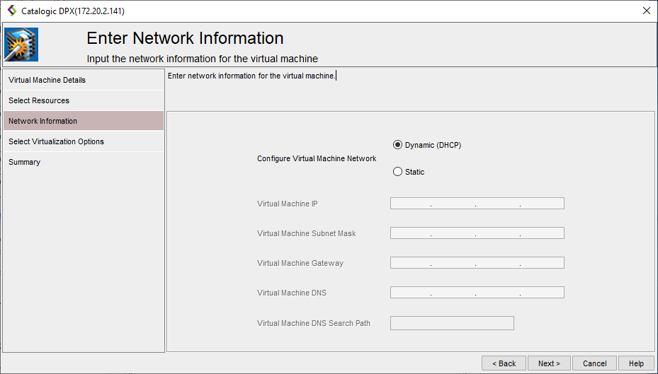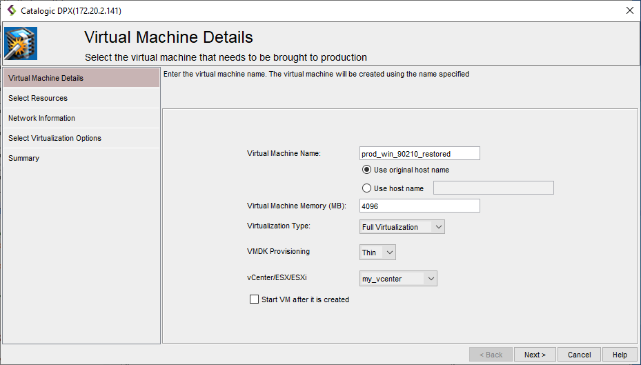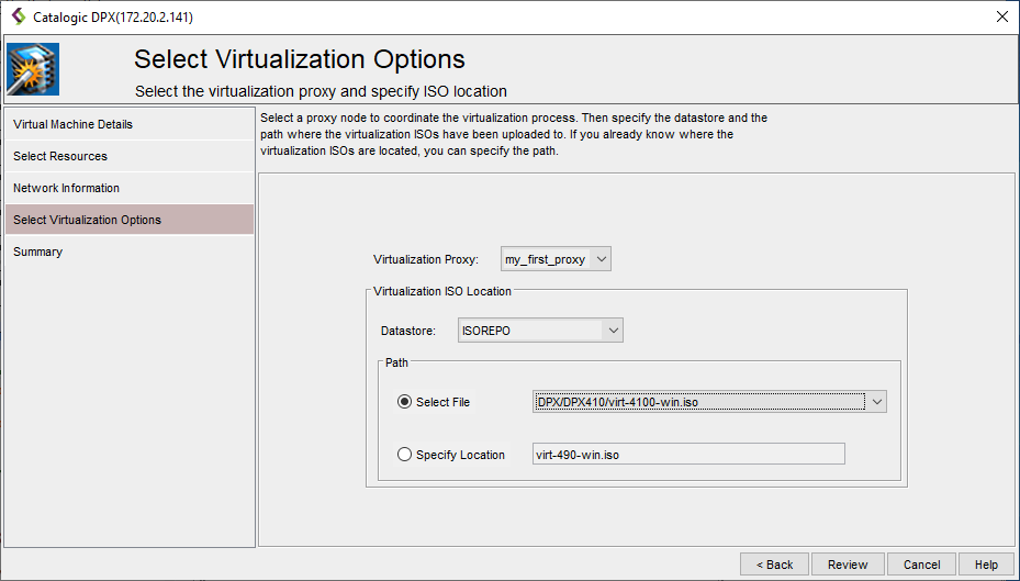 - Select the virtualization proxy server. For more information, see DPX Proxy Server.