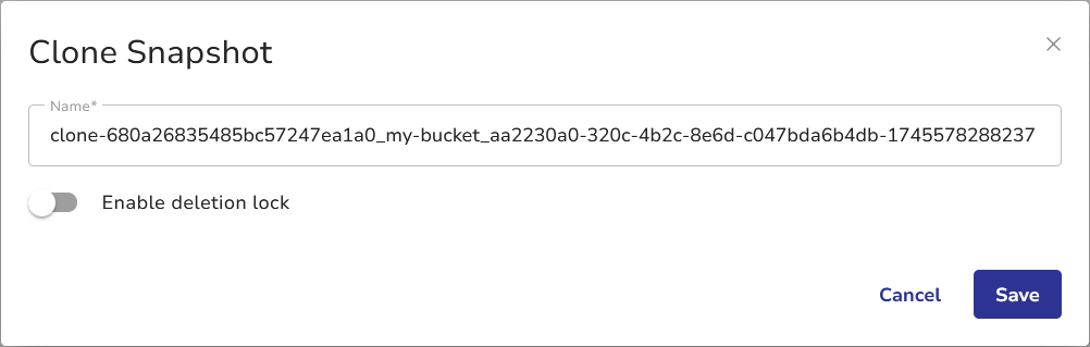 - Click Save to clone the snapshot to a separate volume.