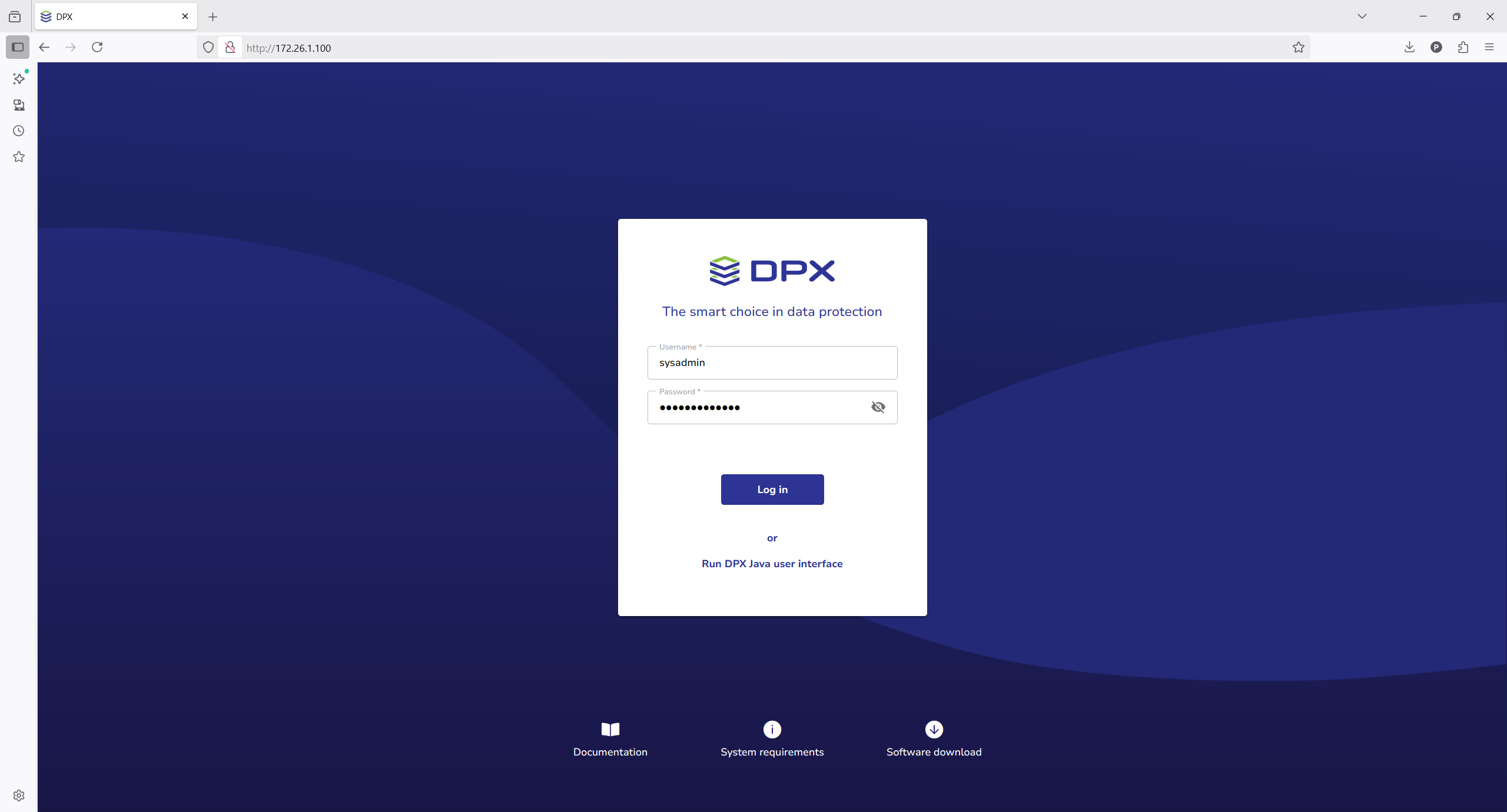 To access your Catalogic DPX Master Server, type the server’s IP address in your browser and press Enter.