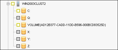 The backup job source option Back Up Content of Mounted Drive must be set to Yes in order to back up the data from a mounted volume. A mount point is a path to a volume that may or may not have a drive letter. On the Backup window, mount point volumes appear in the following format: