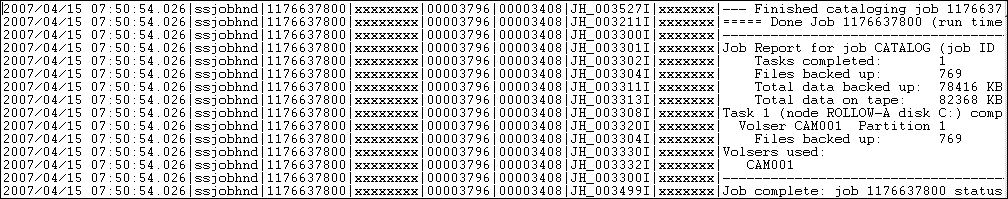 Catalogic DPX log files are formatted in plain text. Typically, every line has 9 columns that are separated with a pipe (|), and it is structured as shown: