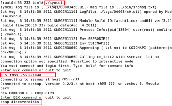 Type quit to exit the syncui utility.