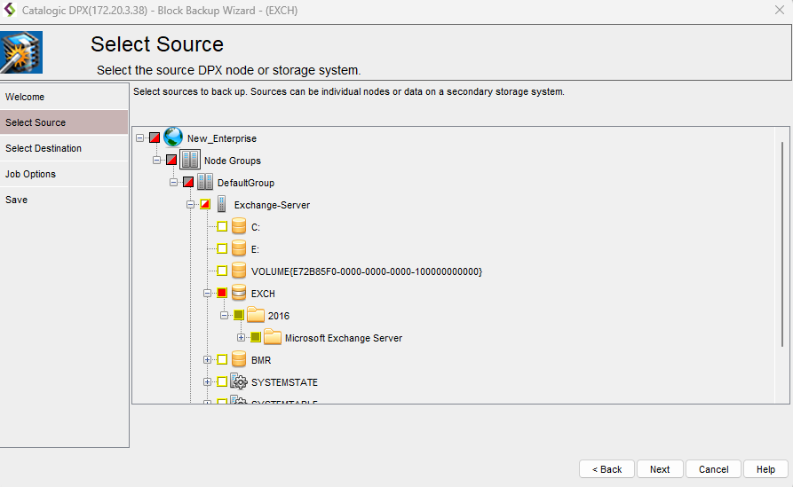 - In the Select Source screen, choose the Exchange databases you want to include in the backup. Click Next.