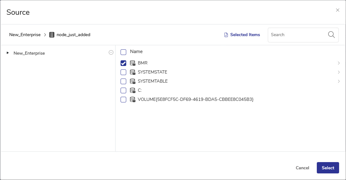 In step 4 (source selection), select the BMR volume.