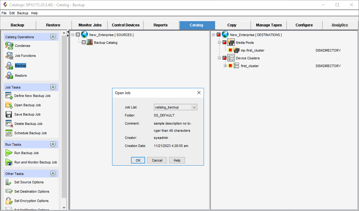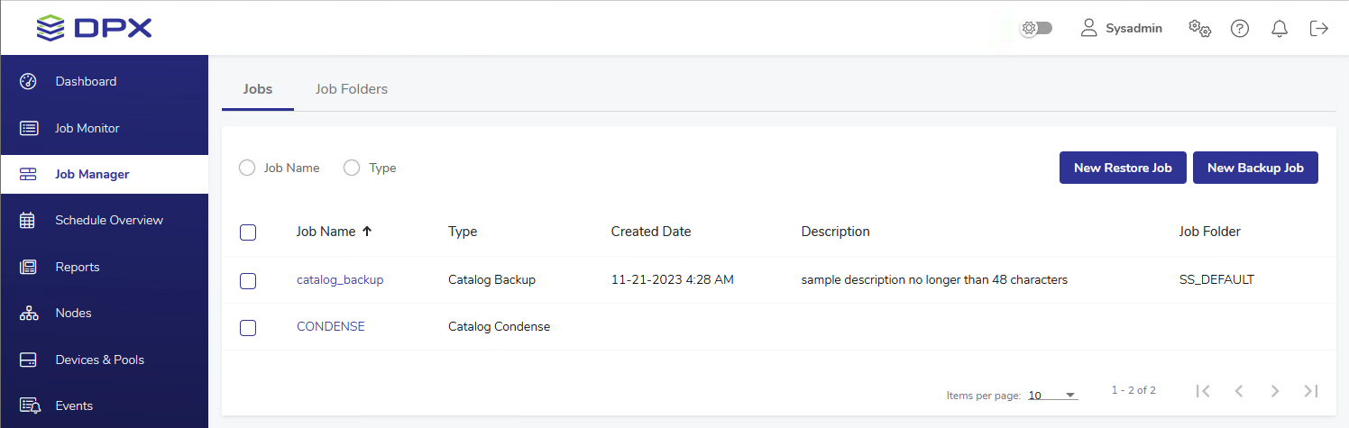 1. In the main web interface view, go to Job Manager in the sidebar. Then select the catalog backup job you want to edit from the list.