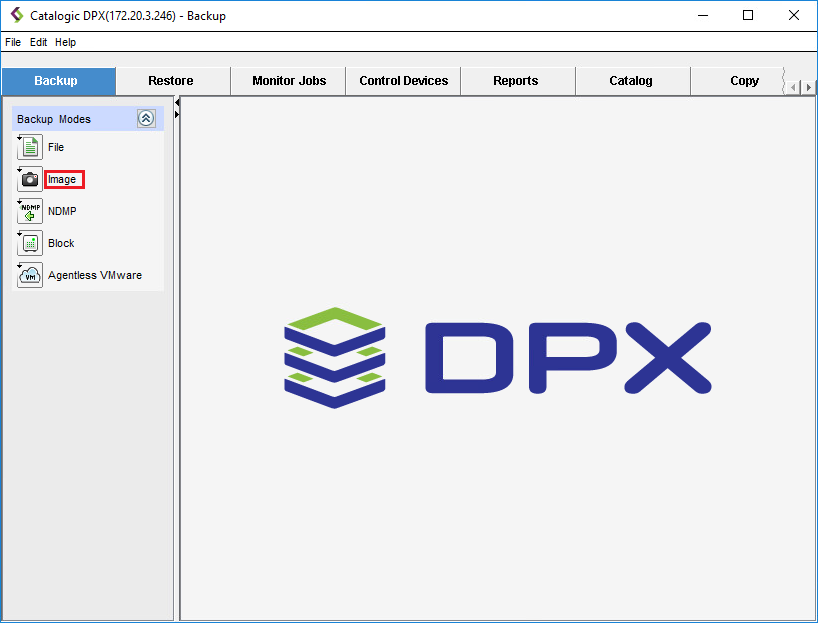 In Catalogic DPX version 4.15, only the desktop interface supports Image backups.