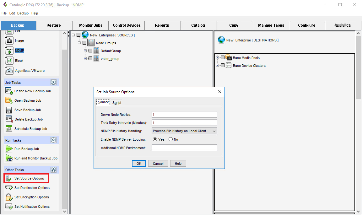 Job Source Options for NDMP Backup