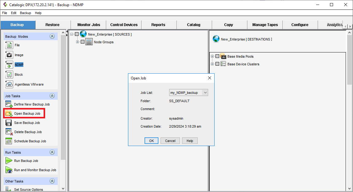 - Make all required changes to the job definition. The workflow is the same as in Creating an NDMP Backup Job.