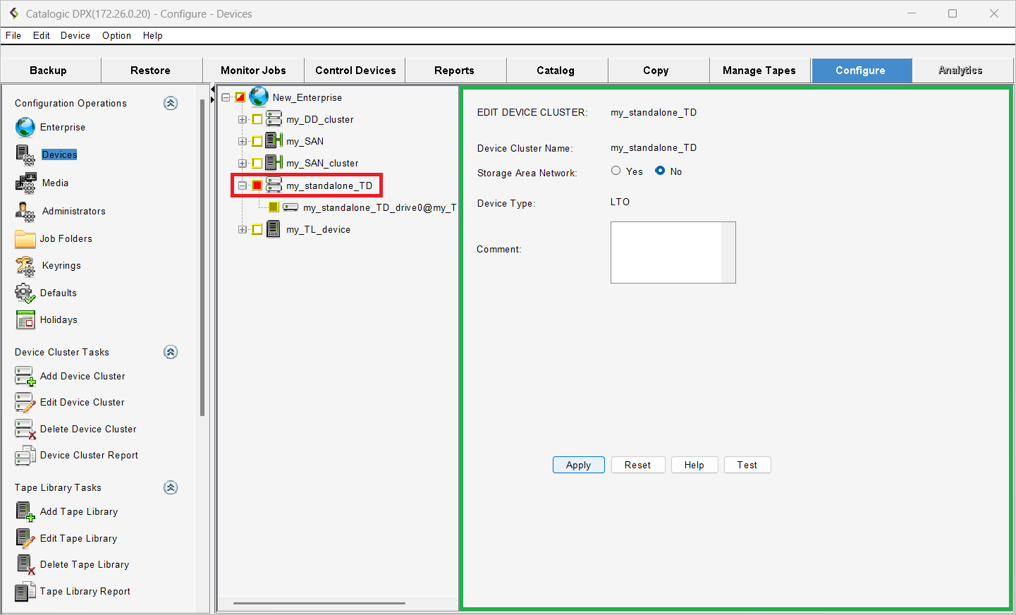 Only Comment is editable. To edit other fields, delete the standalone tape drive and add it again from scratch.
