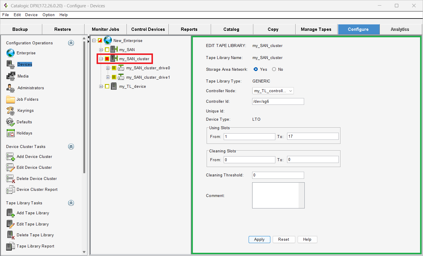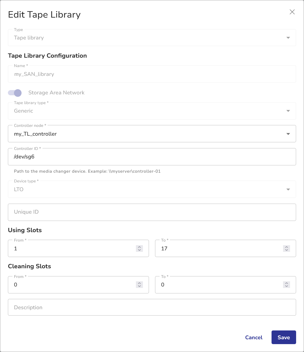 Click the name of the tape library you want to edit to open the EDIT TAPE LIBRARY dialog pane.
