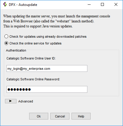 1. In the Autoupdate dialog, select Check the online service for updates (default).