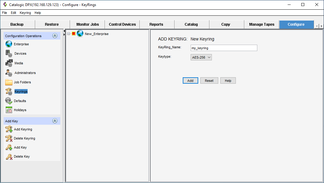 - Right-click the Enterprise and select Add Keyring.