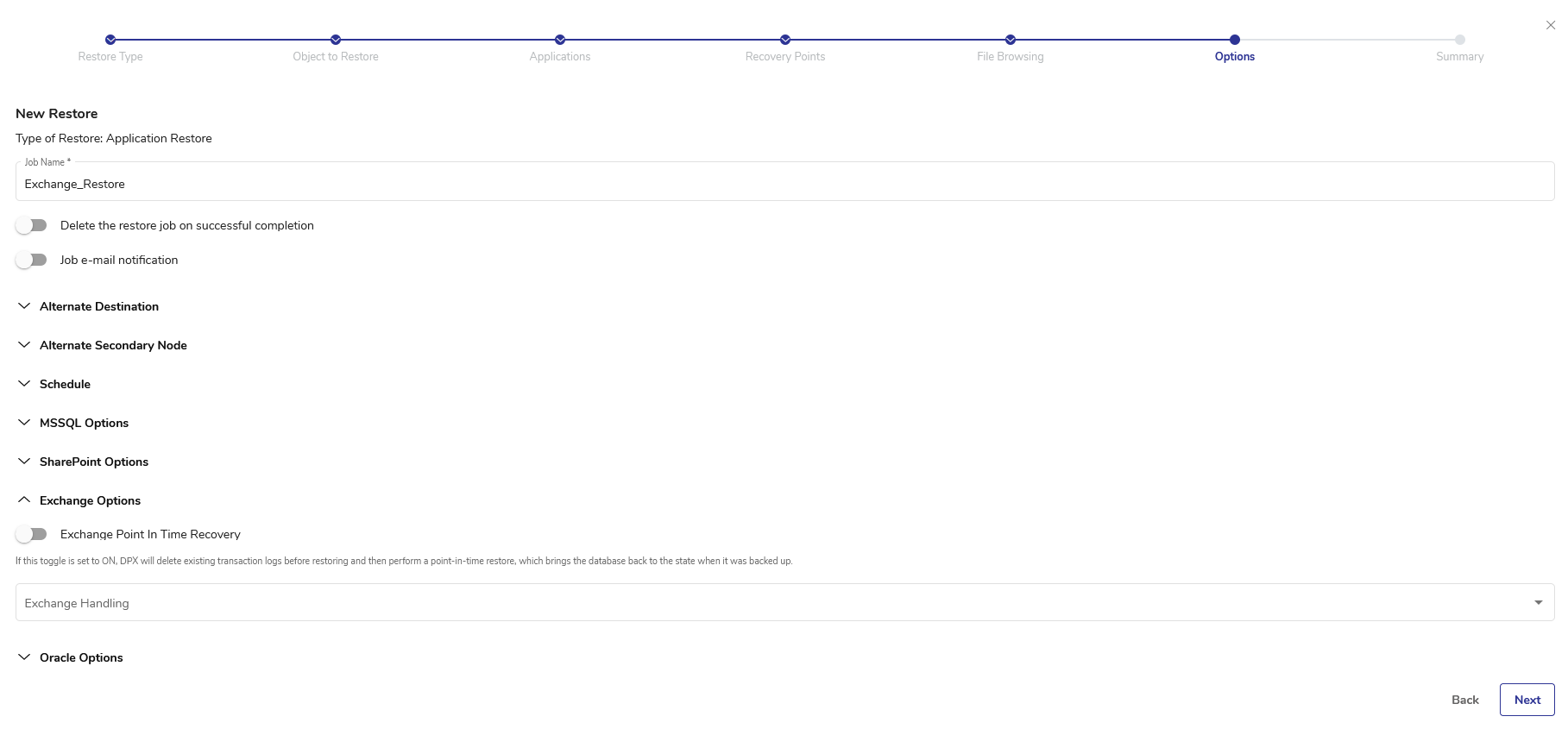 Creating an Exchange Server Restore Job