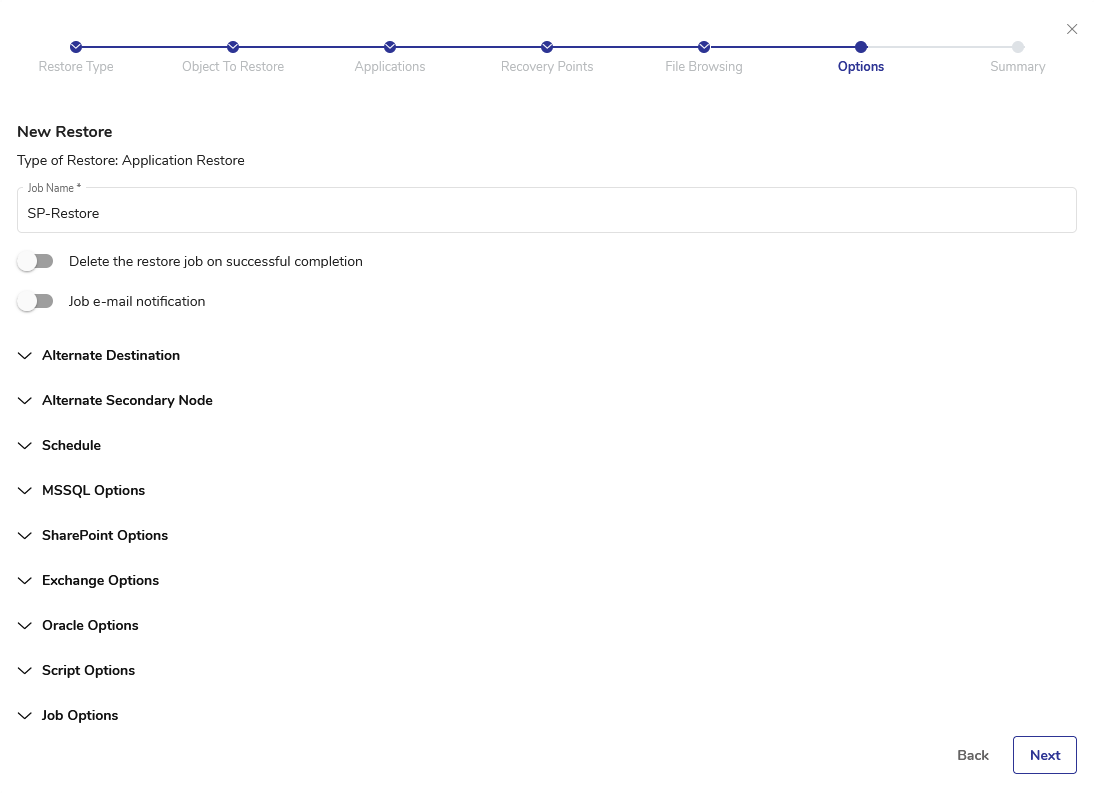 Creating a SharePoint Server Restore Job