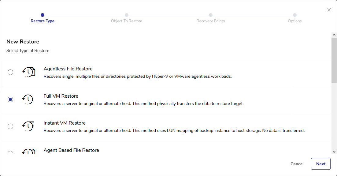 - Select Full VM Restore and click Next.
