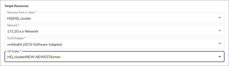 1. Select the Target Resources for the new VM.