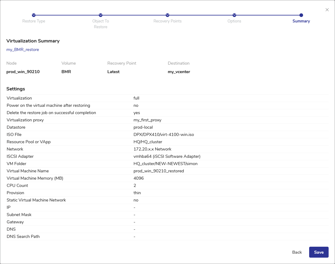 Both Instant and Full virtualization are based on a very similar flow, where a virtual machine is created within the specified location. The difference consists in how the VM will access the backup data: