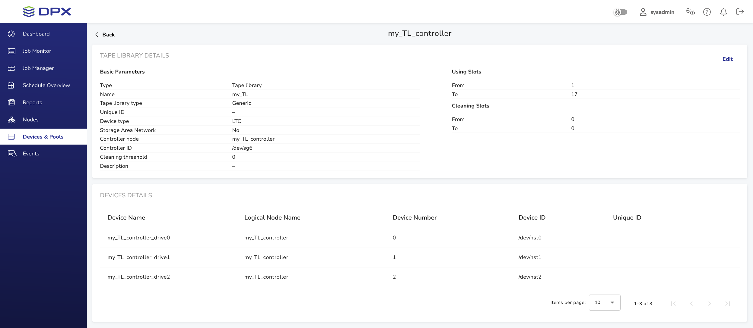 Storage devices (also simply referred to as “devices”) are physical or virtual drives on which media volumes, such as tape cartridges, are processed. Devices are grouped in clusters.