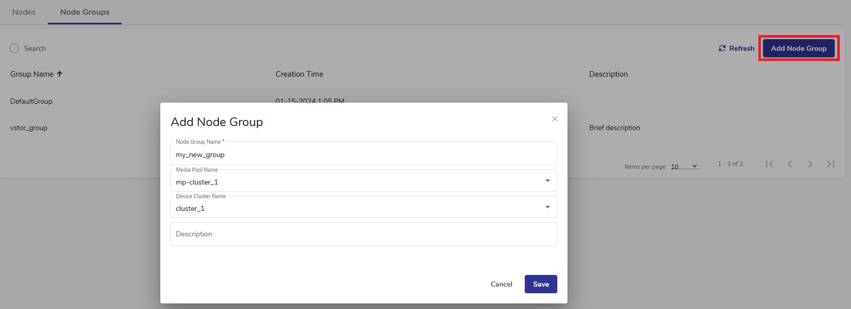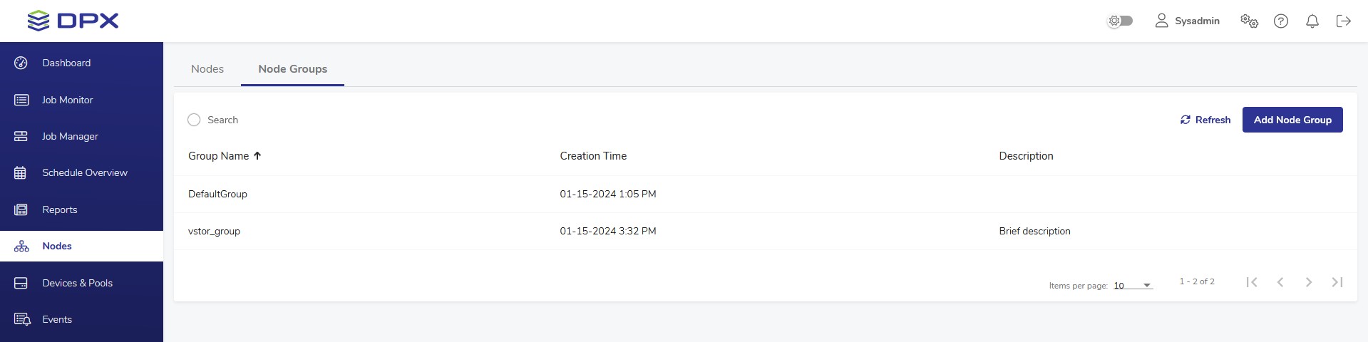 Node groups are a way to organize nodes into logical groups, e.g. storage nodes or tape nodes. In future releases, they will enable you to define backups and privileges for multiple nodes at once. Currently, access to such functionalities is limited to the desktop interface. See also Adding a Node Group below.