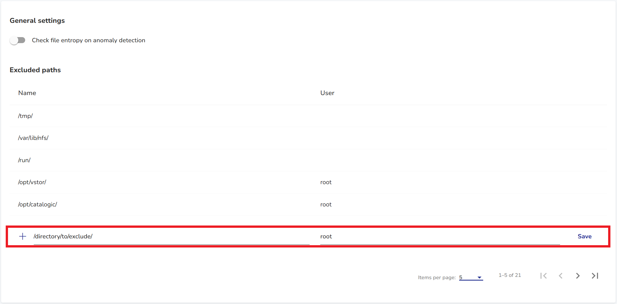 In the Excluded paths section, you can define file paths to be excluded from ransomware detection scanning. The required format for these paths depends on your operating system: