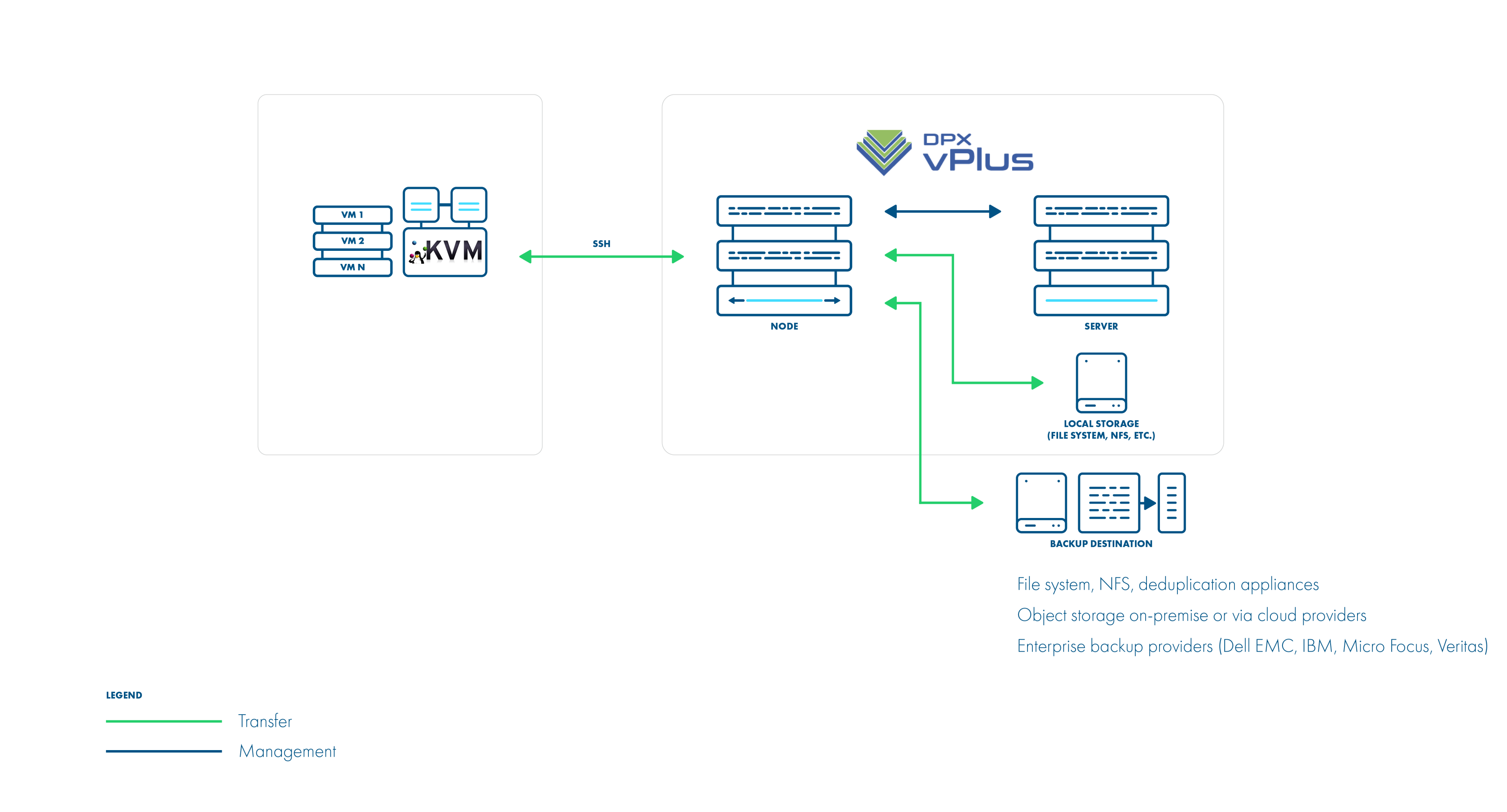 - QCOW2/RAW-file/LVM data exported over SSH (optionally with netcat)