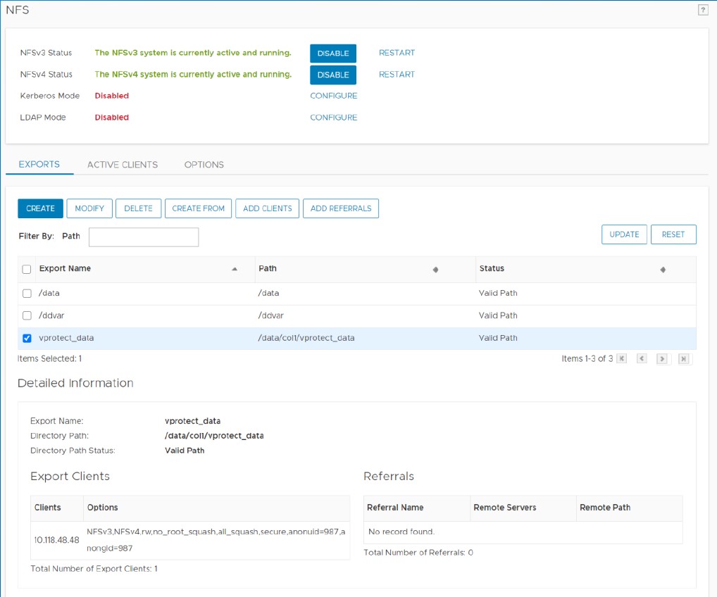 • Note that the export must be set to use the UID and GID of the vprotect user