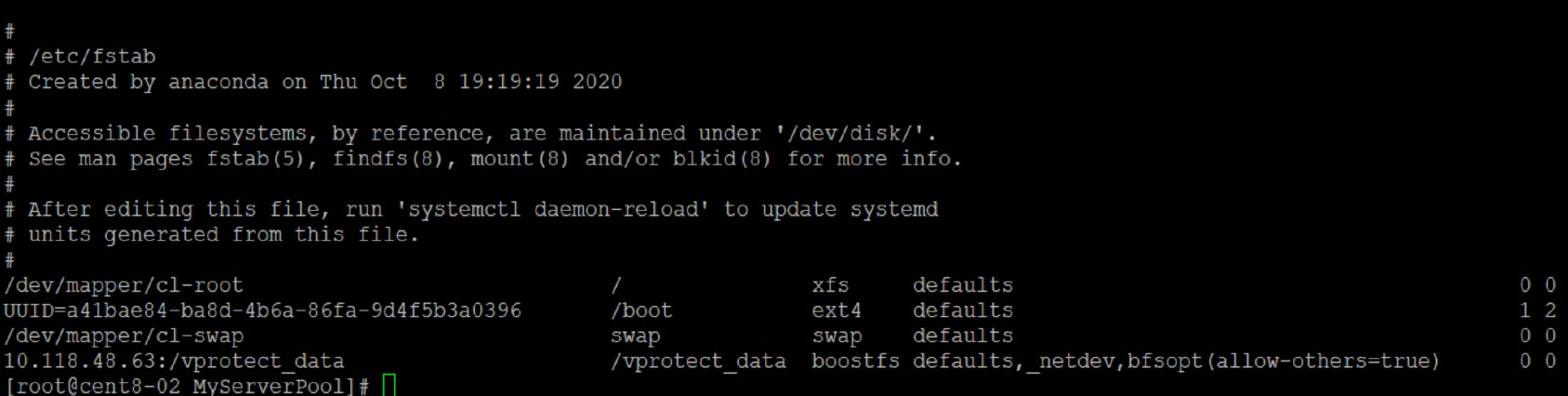 • One server pool should have a separate subdirectory in the export path for example /vprotect_data/pool01, /vprotect_data/pool2 - each subdirectory is a separate NFS share